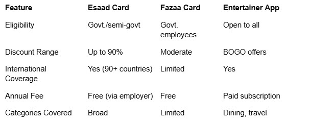 The UAE offers several discount card programs, including Fazaa, Al Saada, and Entertainer. What makes the Esaad Card unique: